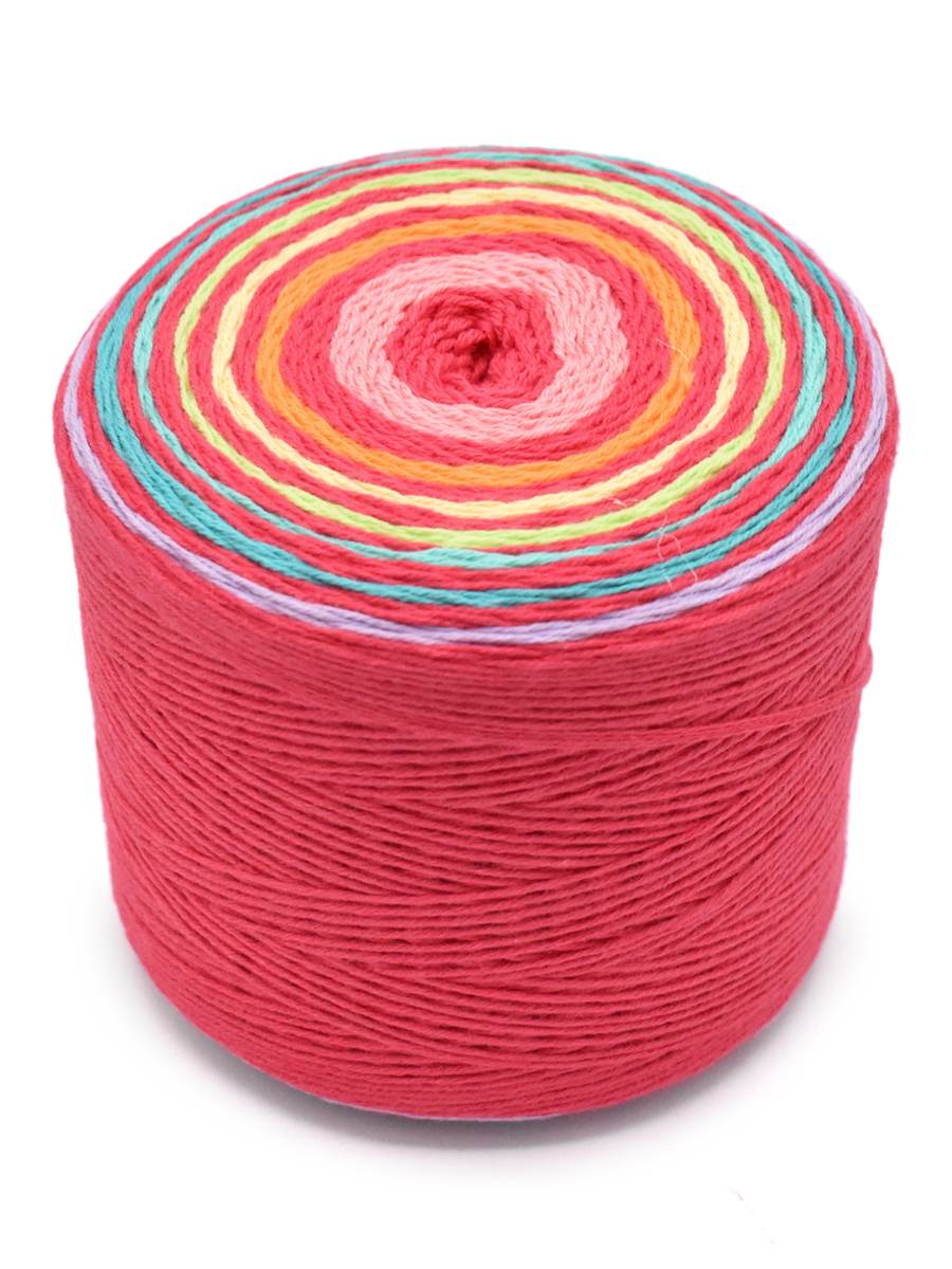 Queensland's Fine Weight Rainbow Cake yarn is a delightful treat for your crafting projects. Made from 100% organic cotton, this yarn is not only soft and lightweight but also comes in a generous 200-gram skein with 875 yards of yarny goodness. Each skein of Rainbow Cake yarn offers ample yardage for a variety of fine weight projects. Whether you're crocheting delicate garments, knitting intricate lace patterns, or creating colorful accessories, Rainbow Cake yarn provides the perfect canvas for your creativity to flourish. The yarn self stripes and unfolds as you create! Indulge in the natural beauty and eco-consciousness of Queensland's Rainbow Cake yarn, where every stitch reflects the quality and sustainability of organic cotton. Elevate your crafting experience with this fine weight yarn and bring a burst of color and comfort to your handmade creations.